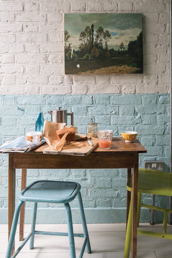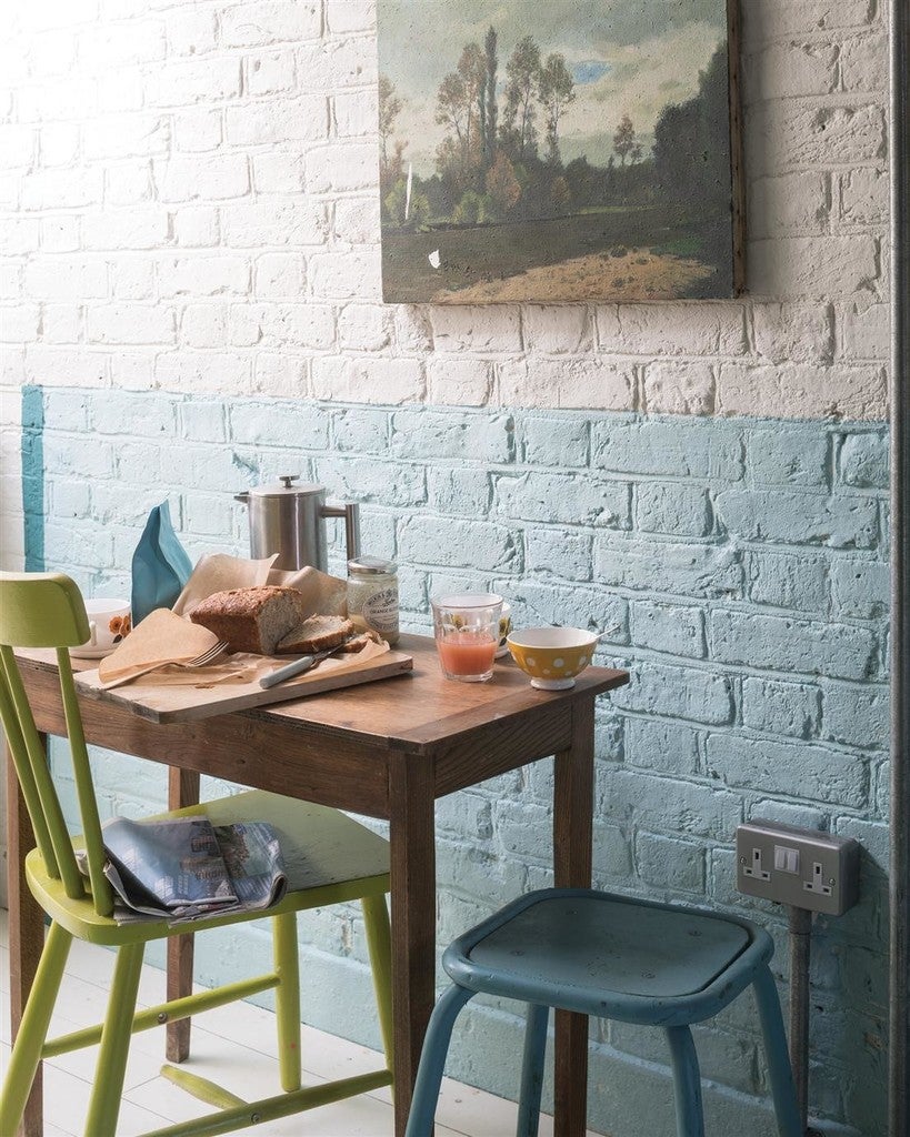 First used as a wallpaper ground colour in our damask collection, Blue Ground creates an upbeat and happy atmosphere which is often used in playrooms as an accent colour alongside Wevet or James White. This clean mid blue tone is both optimistic and friendly, but never cold.