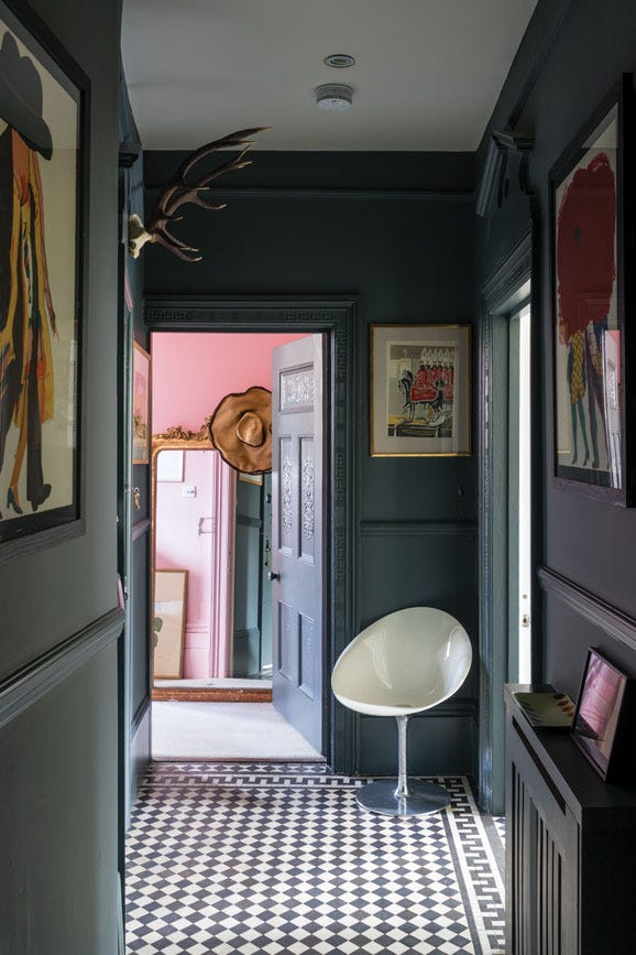 Down Pipe, a dark lead grey, has definite blue undertones to it which deepen the complexity of the finish. Originally inspired by the colour used to paint downpipes and guttering, it has been embraced for use inside the home with fanatical zeal! This daringly dark hue is fabulous as a background to art, and extremely effective for use in halls to create a deeply dramatic entrance to the home.