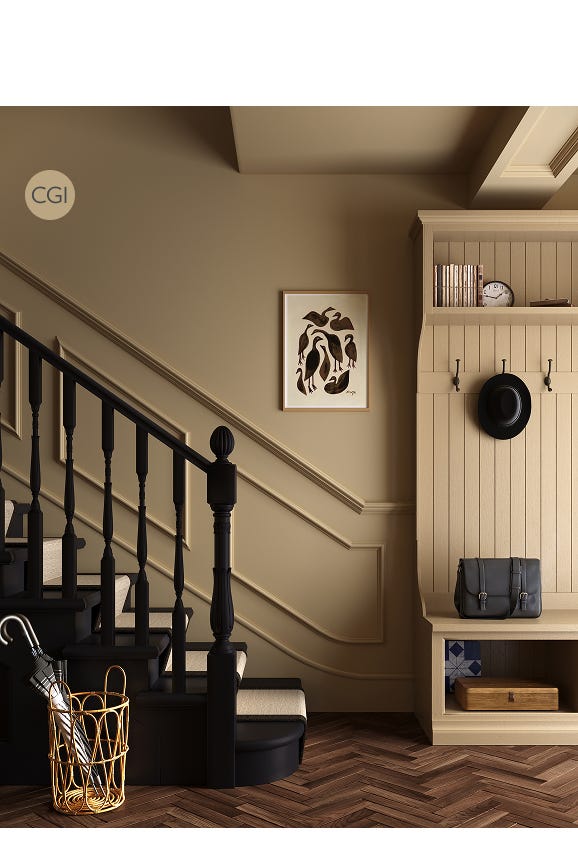For selected Archive shades, we use computer generated images (labelled with 'CGI'). This is to give you an idea of how a colour looks in a space. We'd love to share images of real homes, so do let us know if you have one!
