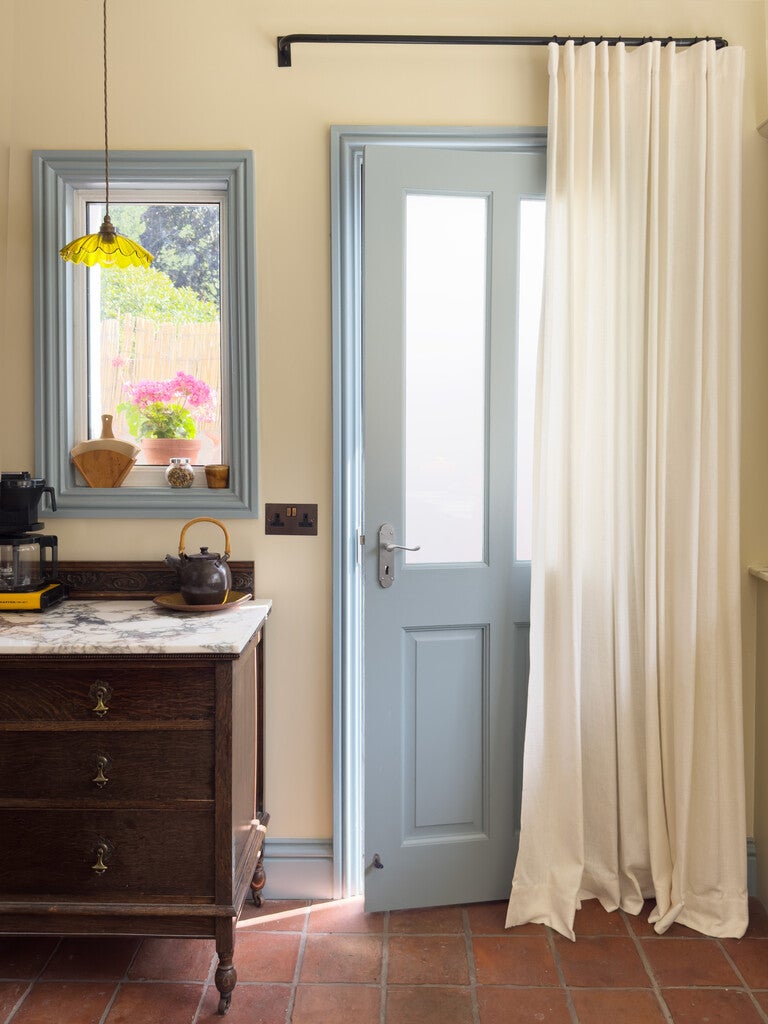A silvery, muted blue